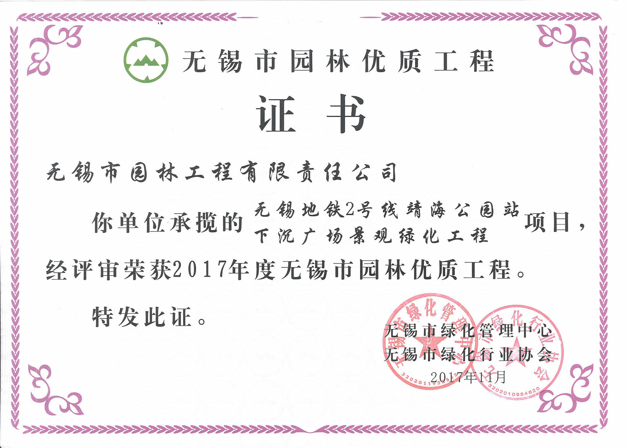 2018揚子杯——無錫地鐵2號線靖海公園站下沉廣場景觀綠化工程