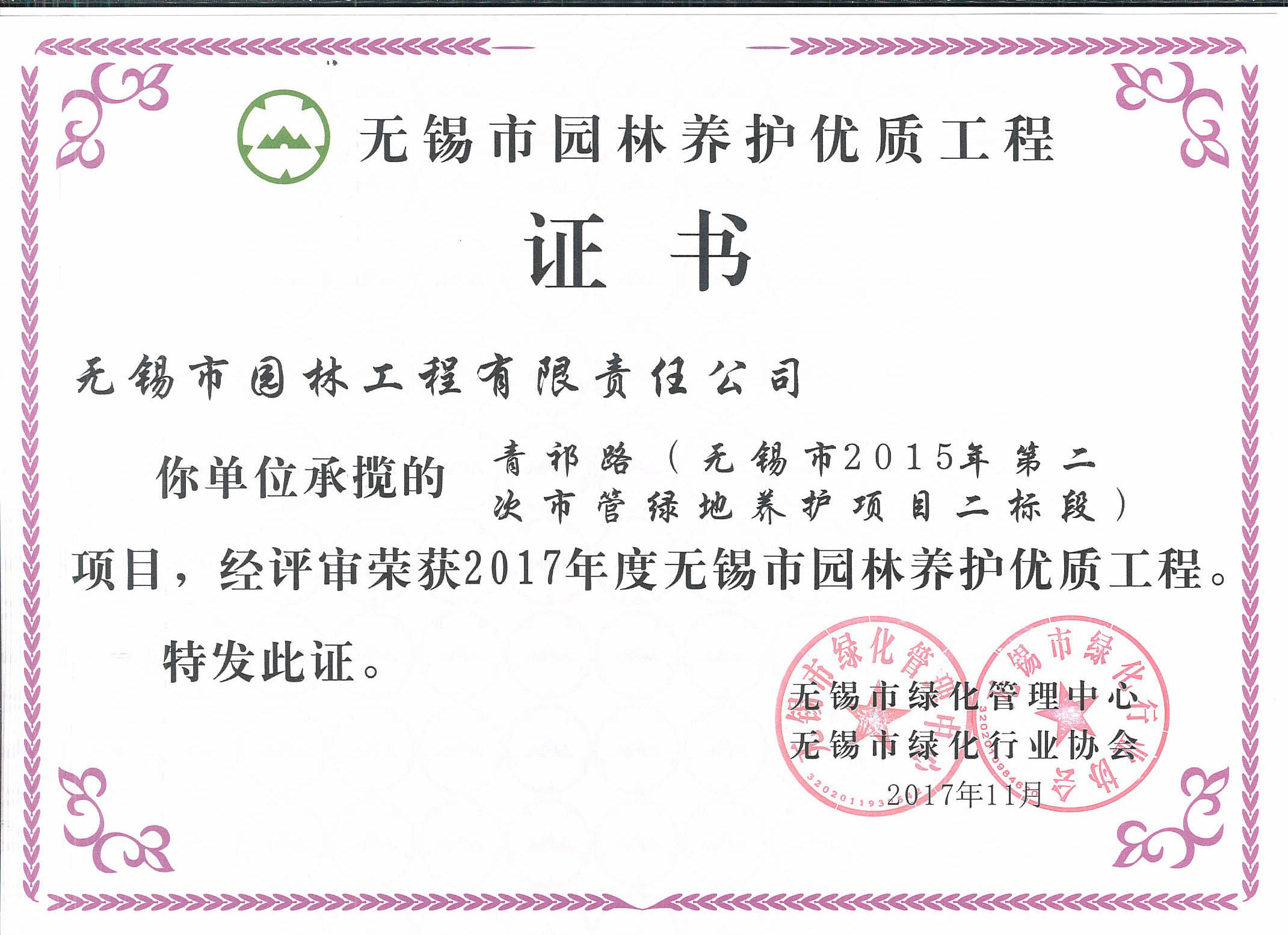 2016揚子杯——無錫地鐵1號線沿線景觀綠化工程三標